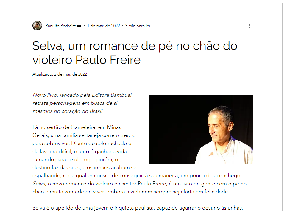 Selva, um romance de pé no chão do violeiro Paulo Freire